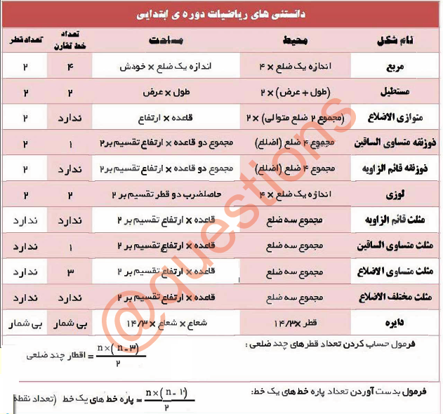 دانستنی های ریاضیات دوره ی ابتدایی