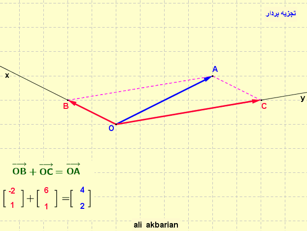 (اما یک بردار را در دو راستای معین Ox و Oy فقط به یک صورت می توان تجزیه نمود)